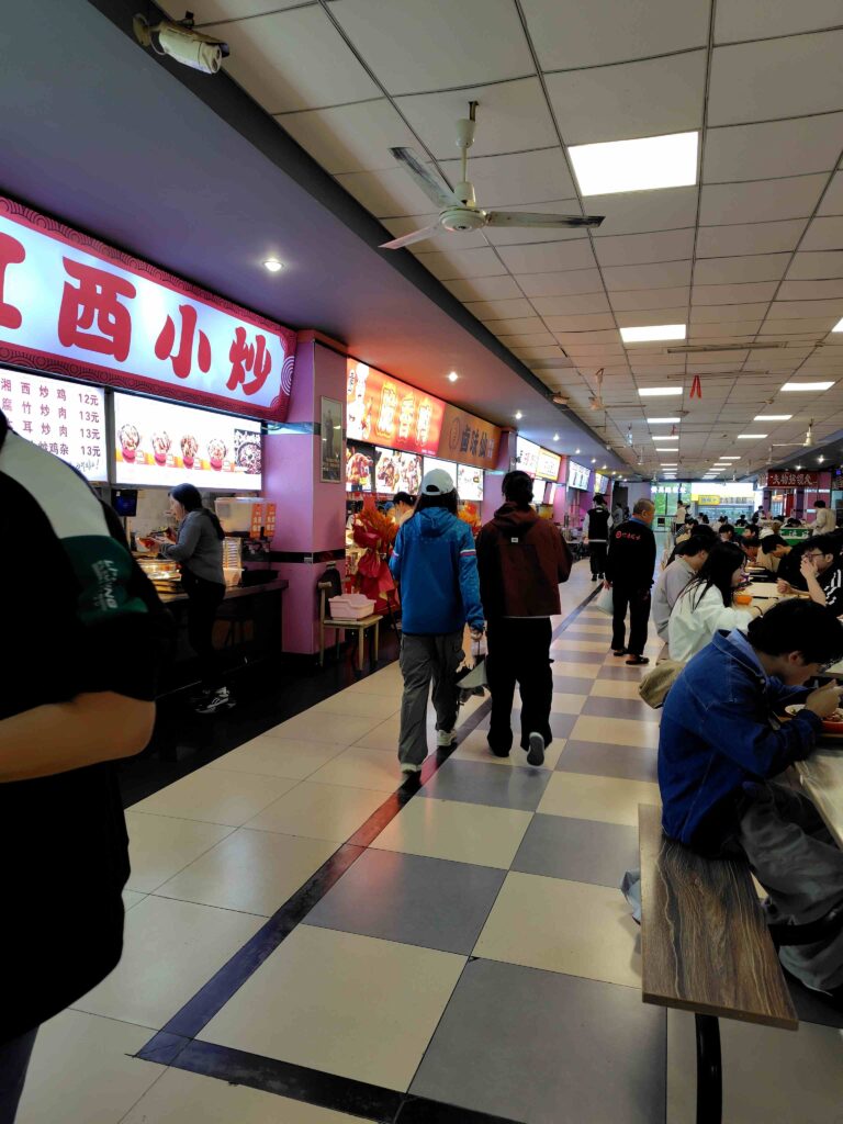 で、この研究一色の生活を支えるのが、バラエティ豊富かつ安価な学食。私の訪問した大学では、キャンパス内に20の学食の建物があるそうです。どの建物も3-5階くらいあって、ショッピングセンターのフードコートみたいな感じとのこと。学生が6万人もいるそうですので、そのくらいの学食が必要なのでしょうけど、すごいです。お値段は高めのところでも、一食300円くらいで、ボリュームたっぷりで、栄養バランスもよさそうでした。